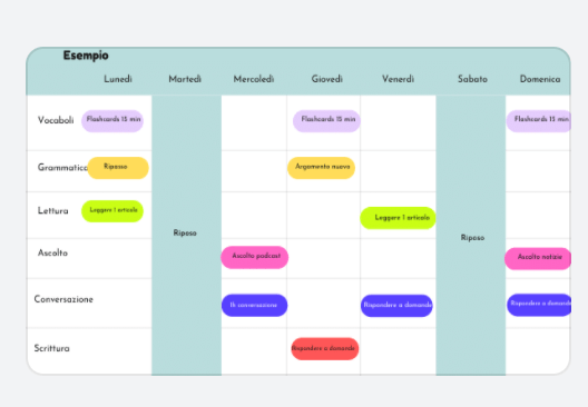 Due volte a settimana, invece di fare esercizi attivi, come imparare termini nuovi e fare conversazione, scegli esercizi passivi, come la lettura o l’ascolto. Questo aiuta le informazioni a sedimentarsi.